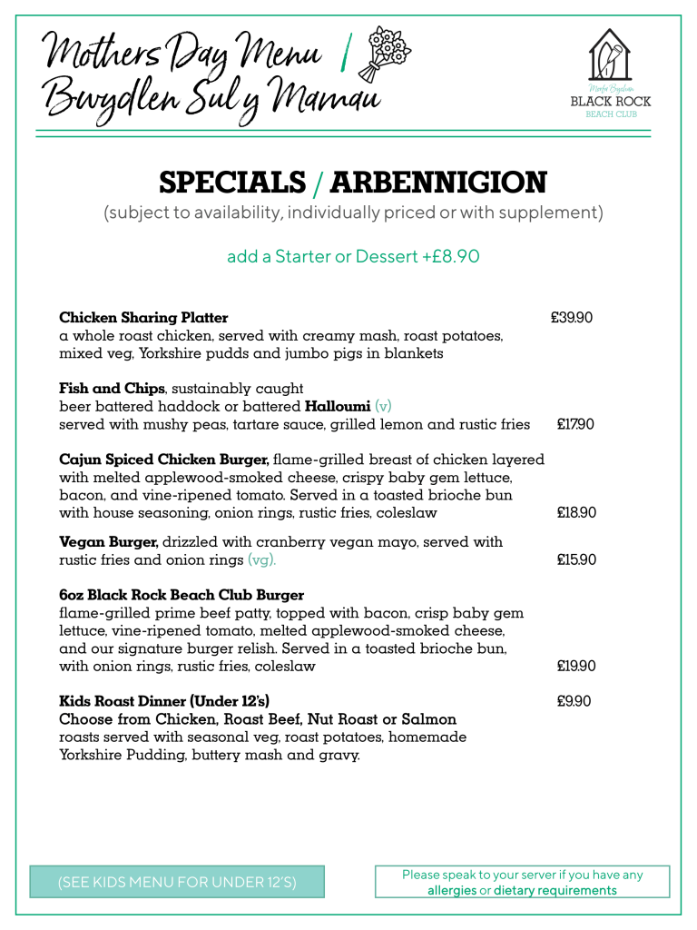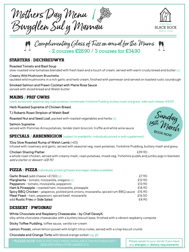 Mothers Day Menu